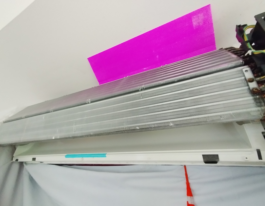 การล้าง: ฉีดน้ำแรงดันสูงล้างทำความสะอาดคอยล์เย็นด้านใน.