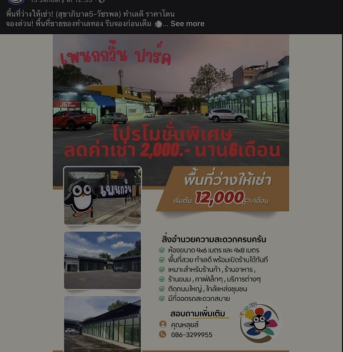 - ชื่อ เบอร์โทร คุณหลุยส์ 0863299955 https://www.facebook.com/penguinpark.sukhapiban5