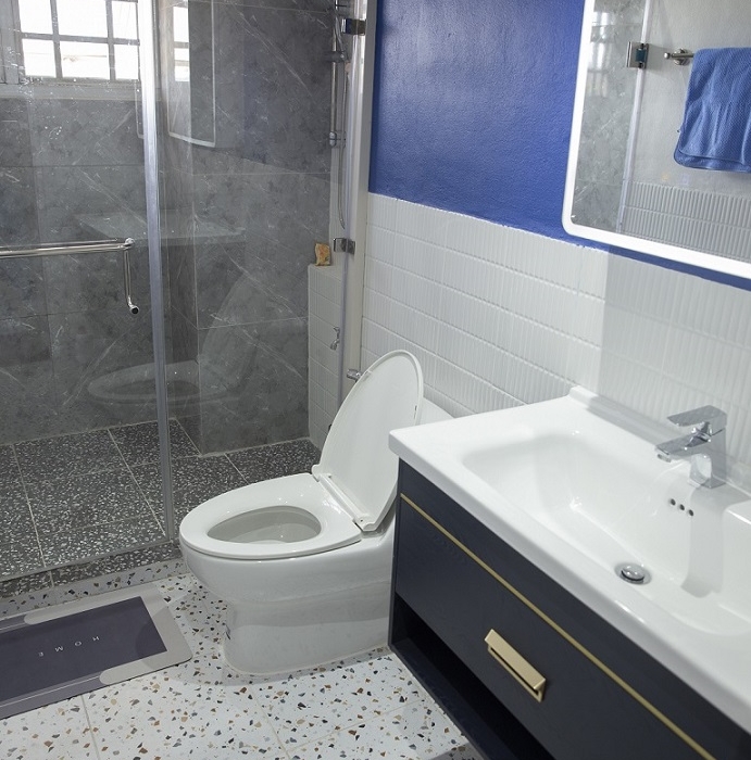 2 private bedrooms, 1 shower room with separate wet/dry zones and tempered glass enclosure.