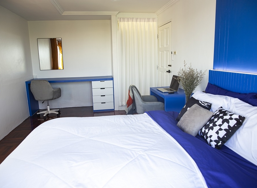 Fully furnished with high-quality mattress, built-in furniture, and real wood flooring.