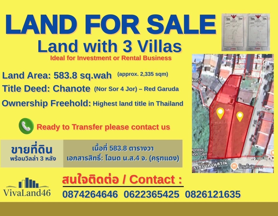 • Title deed: Chanote (Nor Sor 4 Jor – Red Garuda)