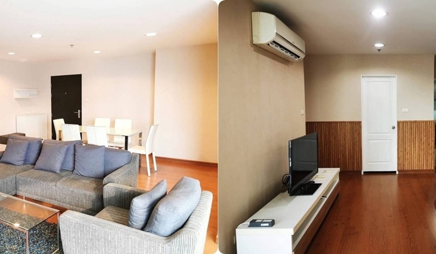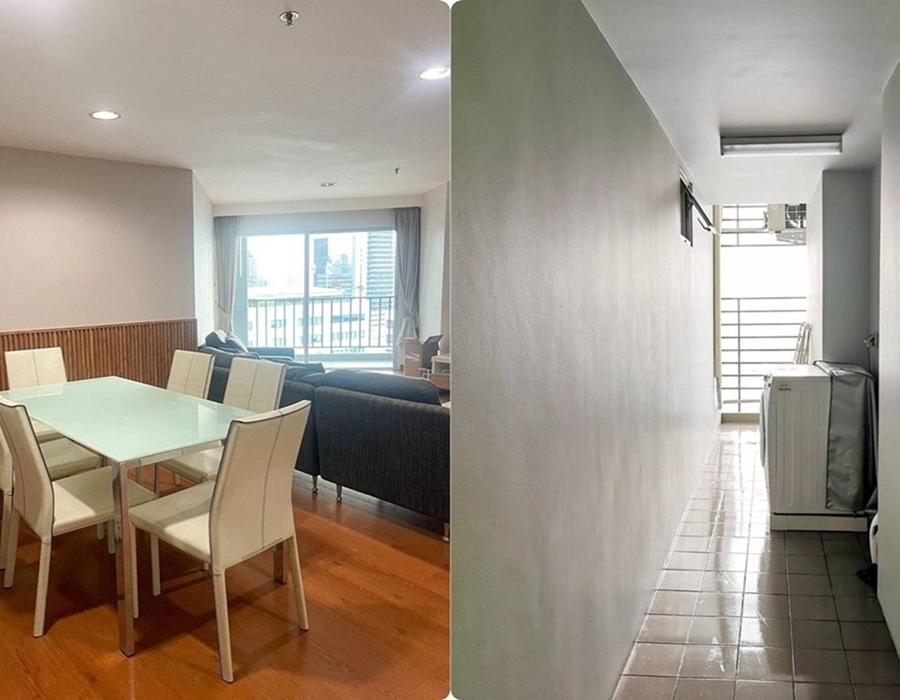 - 3 ห้องนอน, 2 ห้องน้ำ, ห้องนั่งเล่น, ห้องครัว, ระเบียง