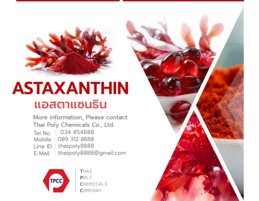 สามารถสอบถามข้อมูลสินค้าได้ที่ บริษัท ไทยโพลีเคมิคอล จำกัด (แอสตาแซนธิน) ประเทศไทย