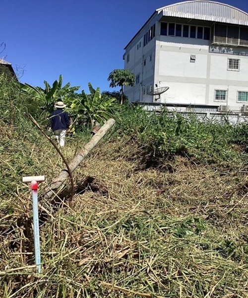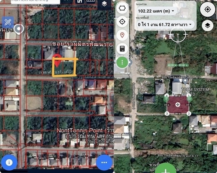 - แปลงซ้ายมือฝั่งตรงข้ามมีบ้าน 1 หลัง ซึ่งอยู่ชิดกับรั่วของหมู่บ้านจัดสรร