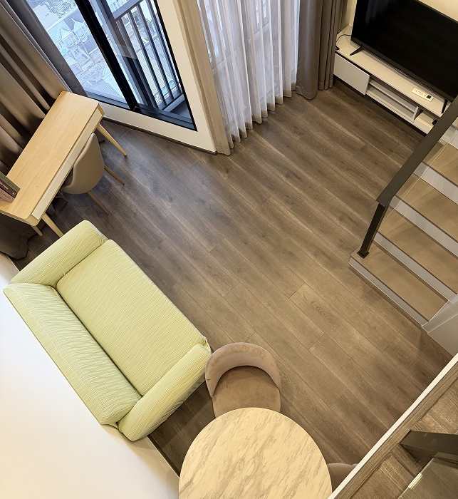 ห้อง 2 ชั้น ประกอบด้วย 1 ห้องนอน, 1 ห้องน้ำ, 1 ห้องครัว, 1 ห้องนั่งเล่น, 1 ห้องแต่งตัว