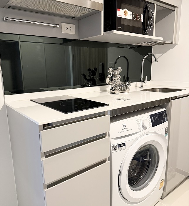 ขนาด 37.95 ต.ร.ม. (ชั้นล่าง 27.04 ต.ร.ม.+ชั้นบน 10.91 ต.ร.ม.) เฟอร์นิเจอร์และเครื่องใช้ไฟฟ้าครบครัน