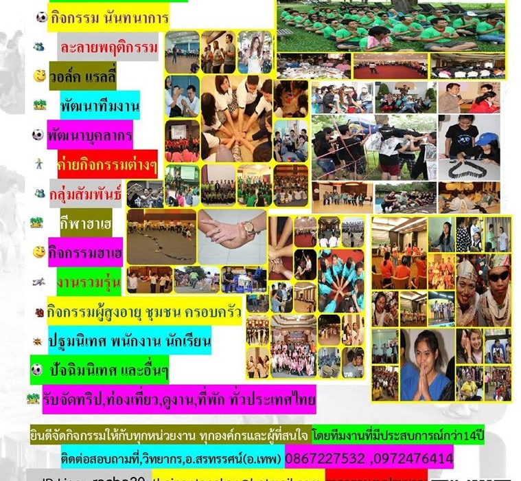 ,วอล์คแรลลี่ ,กีฬาฮาเฮ ,ท่องเที่ยวประจำปี ,ค่ายกิจกรรม ,ค่ายผู้นำ ,ชุมชน ,พนักงาน ,ปฐมนิเทศ ,ปัจฉิมนิเทศ ,สนุกสนาน เฮฮา ได้สาระ นึกถึง ,ทีมงานไทยนันทนาการ (ทุย ทำ ทีม)