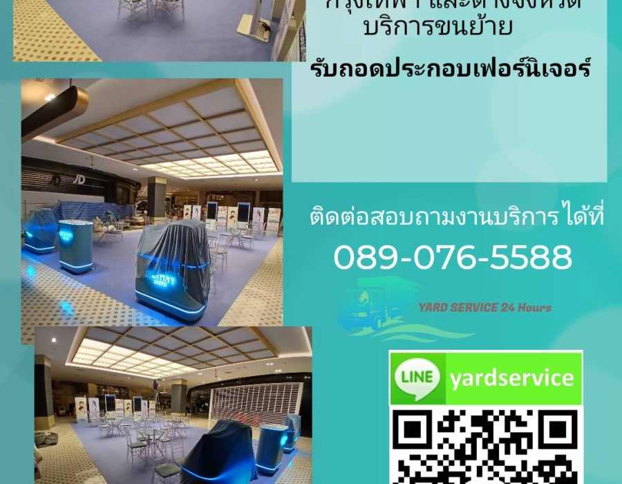 YARD Moving ทีมงานรถรับจ้างขนของของเรา พร้อมบริการท่าน 24 ชั่วโมง ด้วยการบริการที่มีประสบการณ์มายาวนานกว่า 10 ปี ธุรกิจด้านรถรับจ้างขนของ บริการขนย้ายบ้าน ขนย้ายเฟอร์นิเจอร์ รับถอดประกอบเฟอร์นิเจอร์ ขนย้ายร้านขายสินค้า ย้ายร้านอาหาร ขนย้ายบูธ ติดตั้งบูธ ปูพรม ทีมงาน รถรับจ้างขนของของเรา ขอบริการท่านด้วยความซื่อสัตย์ ตรงต่อเวลา และราคาประหยัด พร้อมความเป็นมืออาชีพที่ใส่ใจดูแลท่านด้วยดีเสมอมา